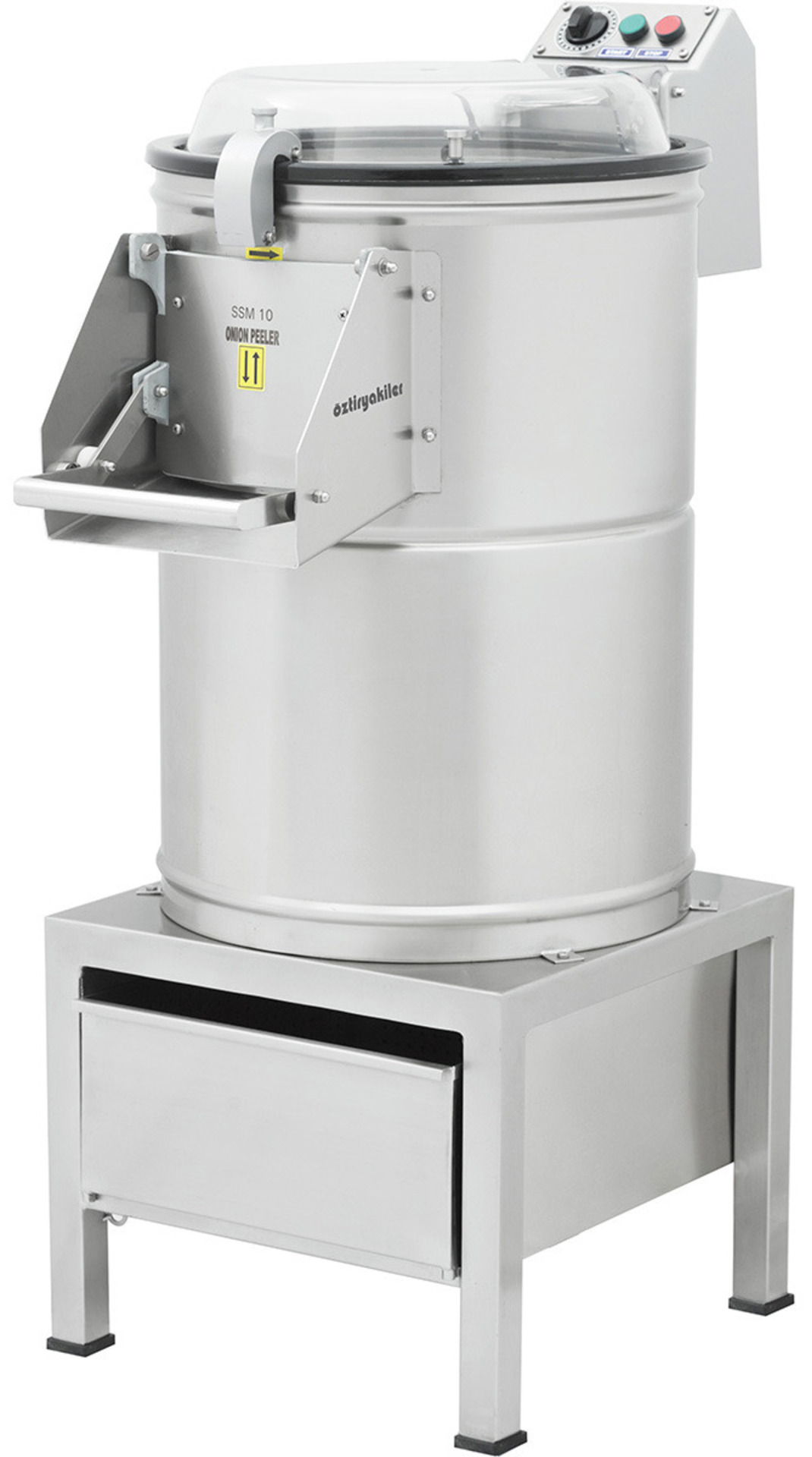 -Ξεφλουδίζει και πλένει τα κρεμμύδια αυτόματα. -Η ικανότητα ξεφλουδίσματος εξαρτάται από το μέγεθος, τον τύπο, την ποιότητα του κρεμμυδιού. -Σώμα από ανοξείδωτο ατσάλι. -Σύστημα φίλτρου αποστράγγισης που δεν φράζει και είναι ενσωματωμένο κάτω από τη μηχανή, συγκεντρώνει όλα τα υπολείμματα από τις φλούδες κρεμμυδιού. -Εύκολα αντικαταστάσιμος δίσκος αποφλοίωσης από ανοξείδωτο ατσάλι. Ο δίσκος αποφλοίωσης διαθέτει λειτουργία αυτοκαθαρισμού με τη χρήση ειδικής βούρτσας. -Ο χρονοδιακόπτης σταματά αυτόματα τη μηχανή όταν λήξει ο ρυθμισμένος χρόνος. -Το διαφανές κάλυμμα από πολυανθρακικό μπορεί να κλειδωθεί εύκολα. -Θερμικά προστατευμένος κινητήρας. -Εκκένωση από το μπροστινό καπάκι.