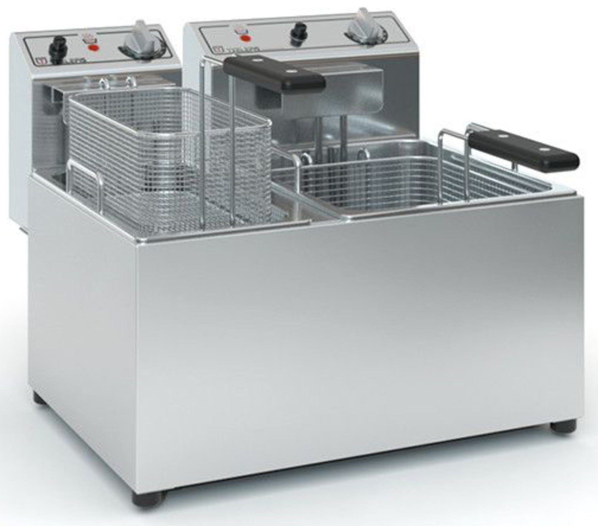 Fryer with 2 separate tanks with separate electrical connection each and the option of single-phase or three-phase connection in the large tank.