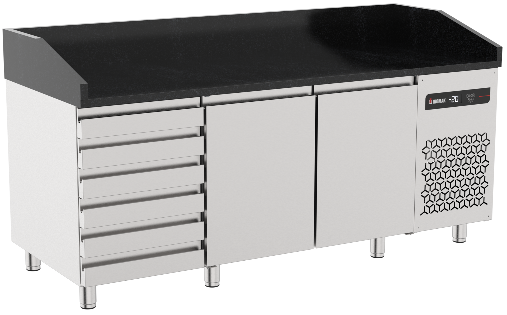 REFRIGERATED PIZZA COUNTER WITH GRANITE & DRAWER CHEST INOMAK PIZC88/ND/I/G