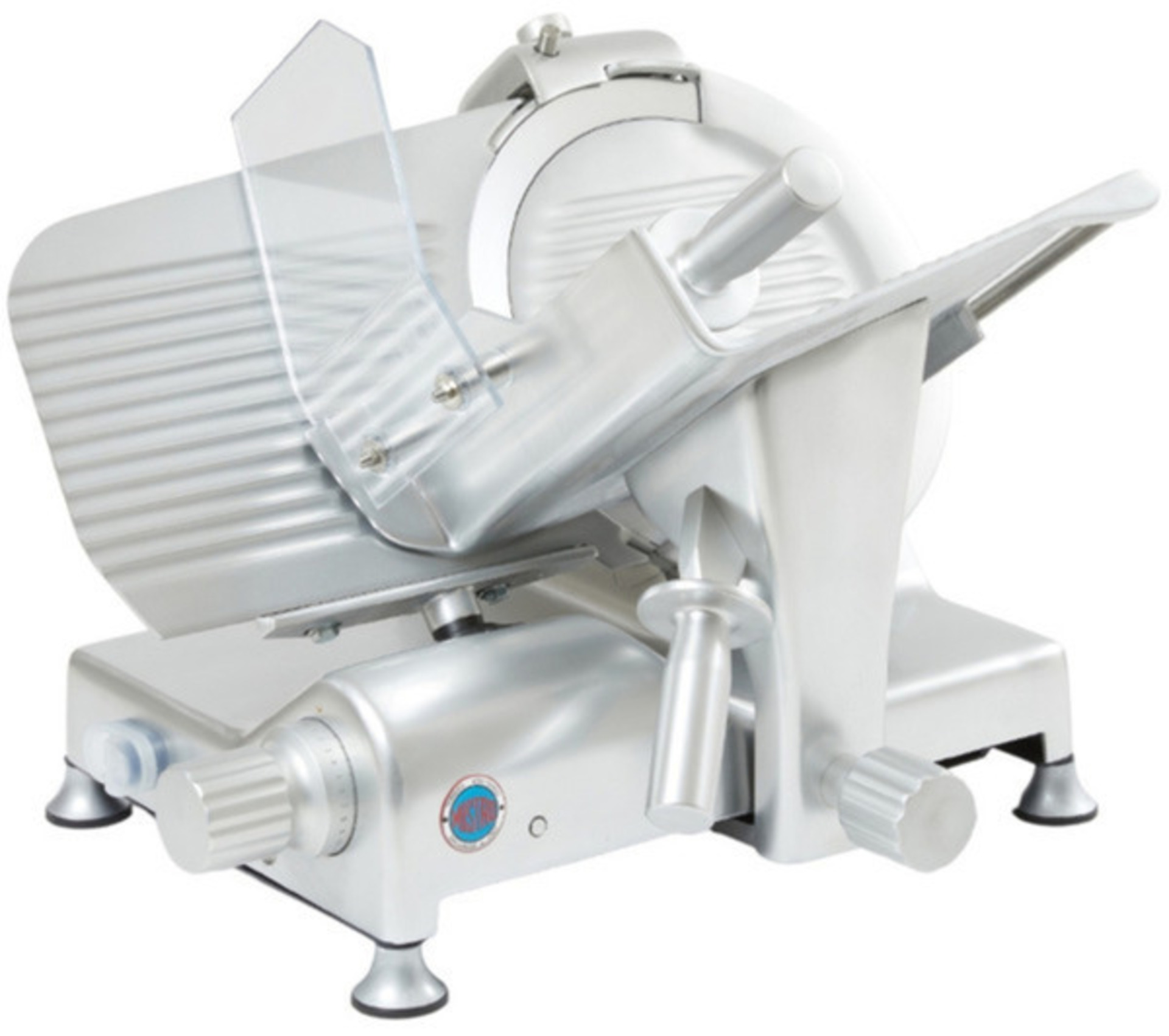 Robust and stable construction in all components made of anodized aluminum. Blade diameter 30cm, ample space between the blade and the base for easy cleaning. Stainless steel blade, stainless steel and chrome "Made in Italy", blade inclination 35°. Moving parts that slide on Teflon rings that allow a smooth and ergonomic movement without wear and tear on the operator. Integrated sharpener with grinding that guarantees perfect sharpening of the blade and clean cutting of the product. Silent motor, single-phase or three-phase. Motor cooling with ventilation. Belt drive. Integrated sharpener with special guard that "hides" the knife blade. On / off button with safety relay. Available colors: Black and Red