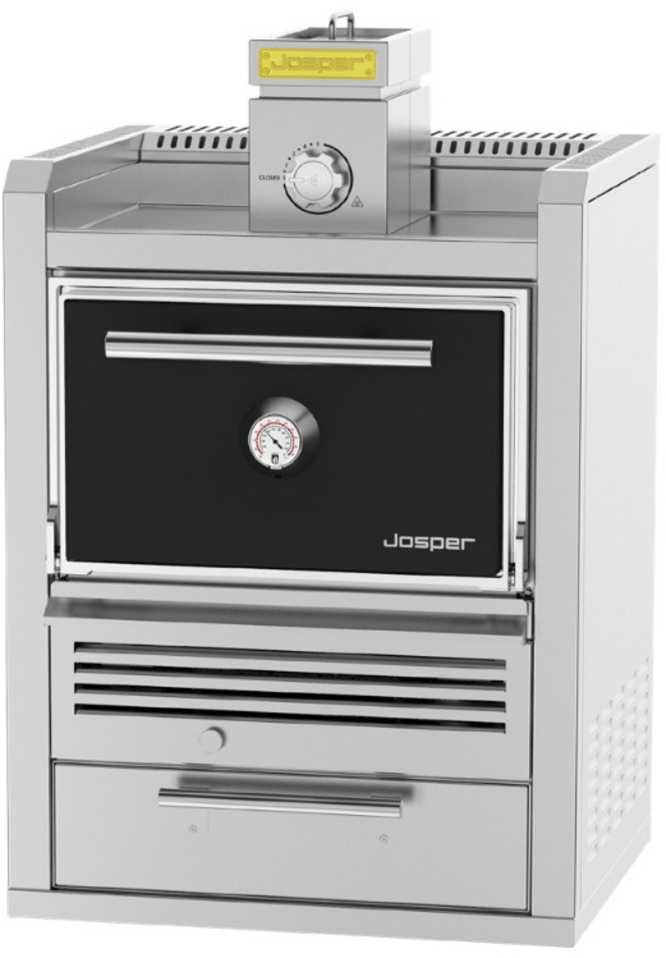 Περιλαμβάνονται: -Αγωγός-Καπέλο εξαερισμού -Τάμπερ εξαγωγής οξυγόνου με ρύθμιση 8 θέσεων -Λαβίδα inox josper -Βούρτσα inox καθαρισμού σχάρας -1 inox σχάρα -1 inox μασιά για το κάρβουνο -Δυνατότητα παραγγελίας επιδαπέδιου μοντέλου με: ημίκλειστο ερμάριο ή κλειστό με εξερχόμενο συρτάρι. -Δυνατότητα παραγγελίας μοντέλου με θερμοερμάριο στο επάνω μέρος.