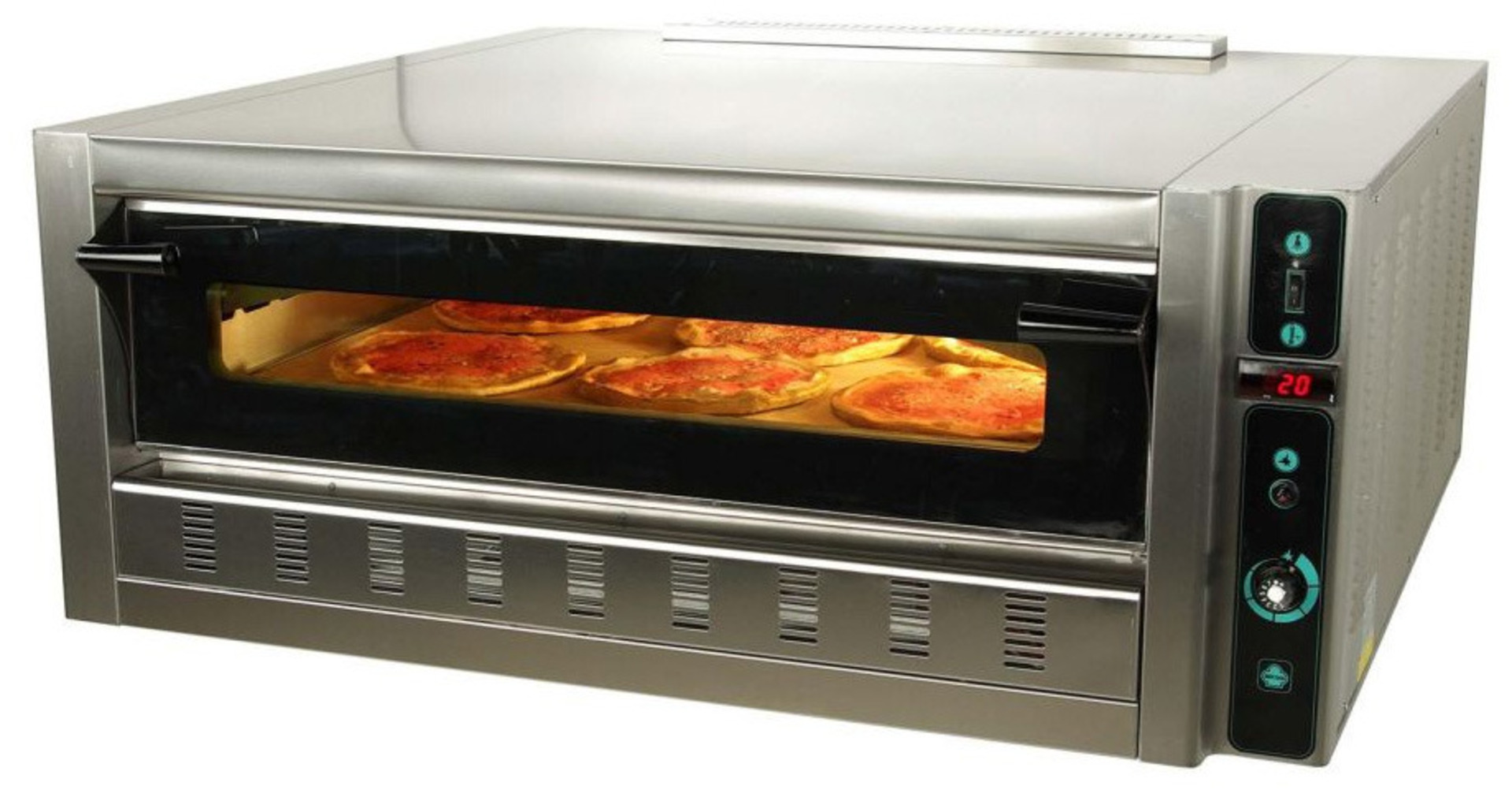 Mε ιδιαίτερη σχεδίαση τοιχωμάτων, παρέχουν την ικανότητα να ανεβάζουν μέγιστη θερμοκρασία σε πολύ μικρό χρονικό διάστημα και να τη διατηρούν σταθερή. Η επιφάνεια ψησίματος είναι από πυρίμαχη πλάκα έτσι ώστε να μπορείτε να ψήσετε απευθείας χωρίς ταψί. Η επιλογή της επιθυμητής θερμοκρασίας γίνεται με θερμοστάτη και επιτηρείτε από ψηφιακό θερμόμετρο. Η πόρτα είναι τύπου φούρνου αρτοποιίας με πρόσοψη από πυρίμαχο κρύσταλλο για εύκολη εισαγωγή και εξαγωγή των προϊόντων και άμεση επιτήρηση του εσωτερικού θαλάμου. Η χωρητικότητα είναι 6 πίτσες διαμέτρου 30 cm.