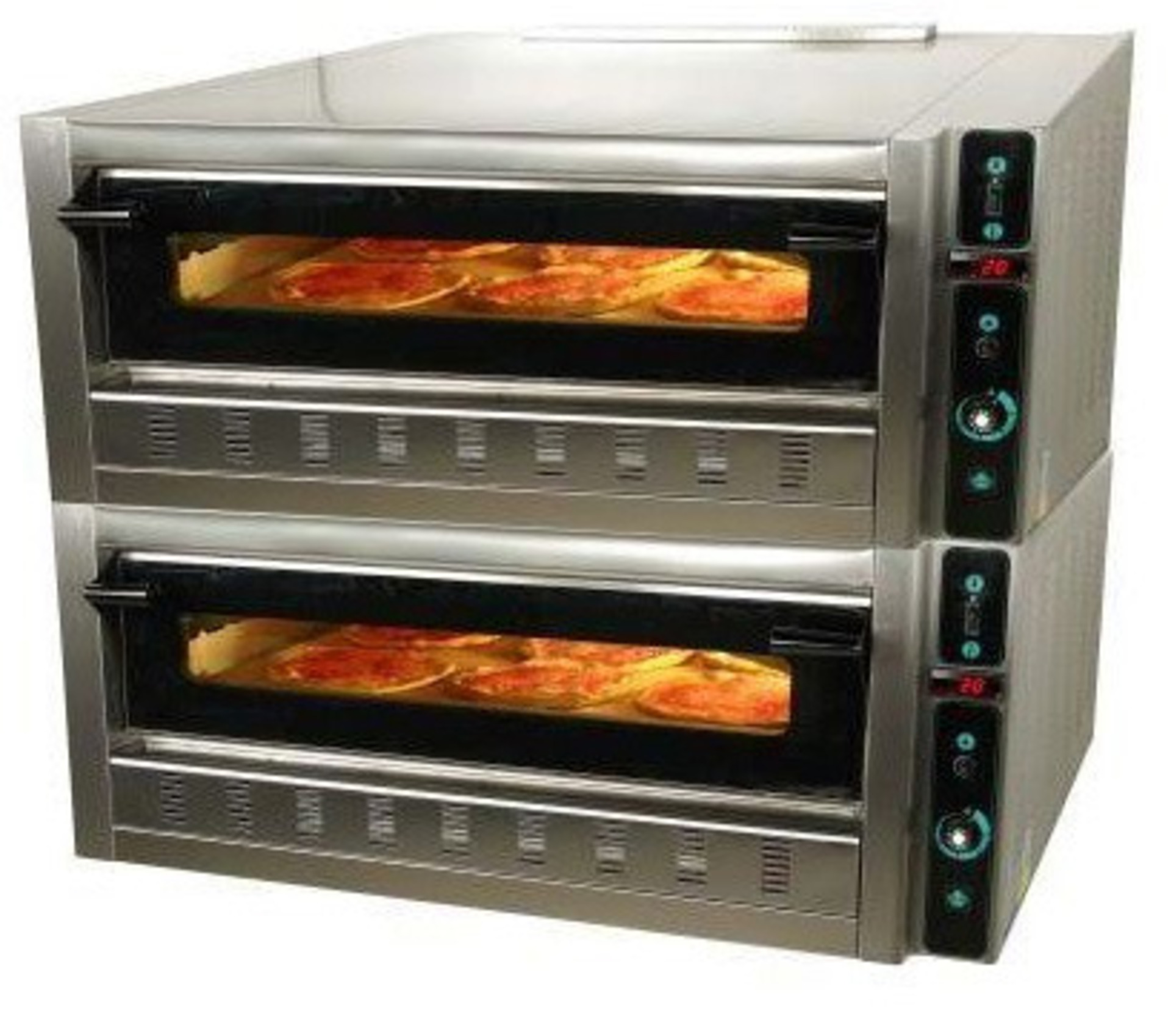 Mε ιδιαίτερη σχεδίαση τοιχωμάτων, παρέχουν την ικανότητα να ανεβάζουν μέγιστη θερμοκρασία σε πολύ μικρό χρονικό διάστημα και να τη διατηρούν σταθερή. Η επιφάνεια ψησίματος είναι από πυρίμαχη πλάκα έτσι ώστε να μπορείτε να ψήσετε απευθείας χωρίς ταψί. Η επιλογή της επιθυμητής θερμοκρασίας γίνεται με θερμοστάτη και επιτηρείτε από ψηφιακό θερμόμετρο. Η πόρτα είναι τύπου φούρνου αρτοποιίας με πρόσοψη από πυρίμαχο κρύσταλλο για εύκολη εισαγωγή και εξαγωγή των προϊόντων και άμεση επιτήρηση του εσωτερικού θαλάμου. Η χωρητικότητα είναι 6+6 πίτσες διαμέτρου 30 cm.