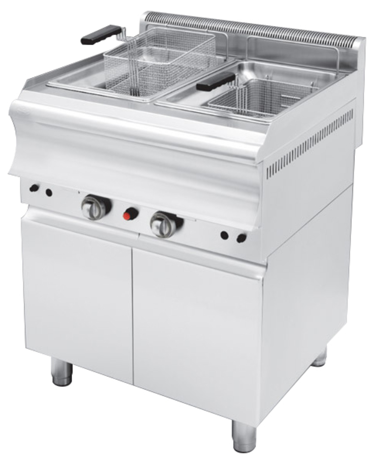 Επιδαπέδια, σε κλειστό πάγκο, με μοναδικό σύστημα αποσπώμενου κάδου που βγαίνει και πλένεται για καθαρό και υγιεινό τηγάνισμα.