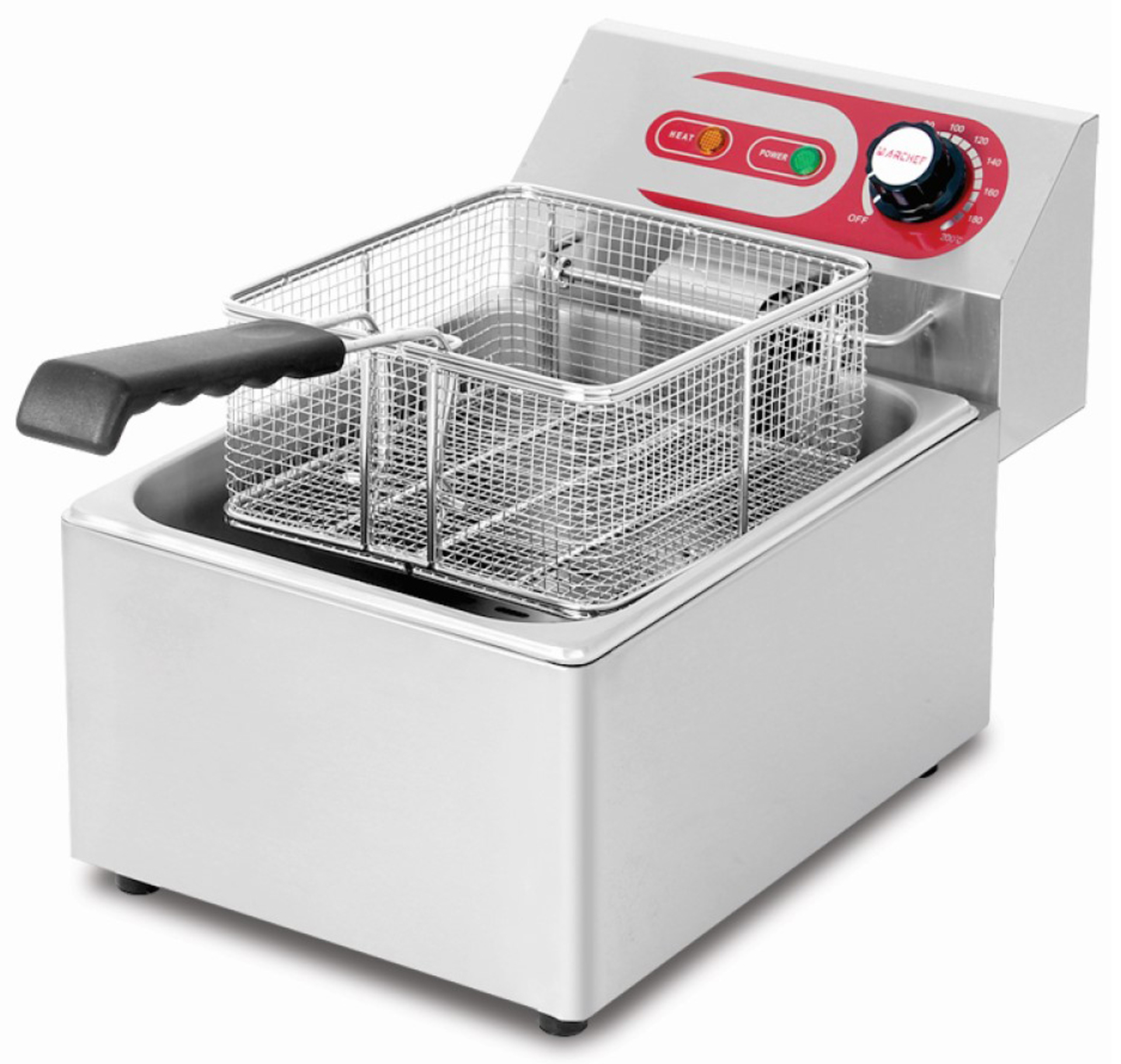Κατασκευή από ανοξείδωτο ατσάλι με μονωμένη λαβή καλαθιού και εύκολα αφαιρούμενη δεξαμενή λαδιού. Ακριβής έλεγχος θερμοστάτη, ασφάλεια για διακοπή λειτουργίας λόγω υψηλής θερμοκρασίας. Οδηγός για μέγιστη & ελάχιστη ποσότητα λαδιού.