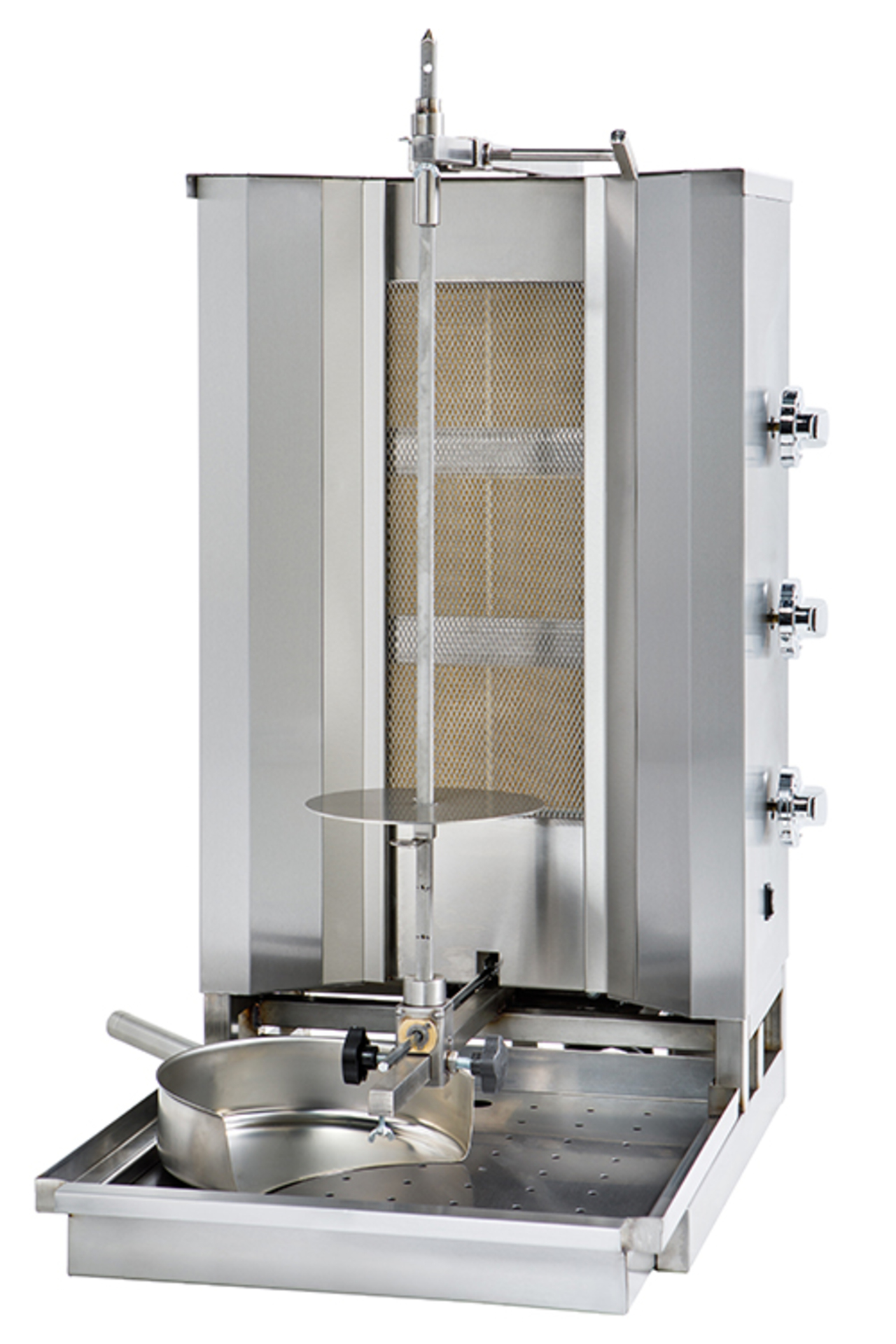 Mε μοτέρ κάτω και 3 καυστήρες. Κεραμική επιφάνεια που φθάνει σε θερμοκρασίες μέχρι 1150oC, εκπέμποντας υπέρυθρη ακτινοβολία. Ομοιογενής καύση αερίου και πολύ χαμηλή εκπομπή ρύπων.