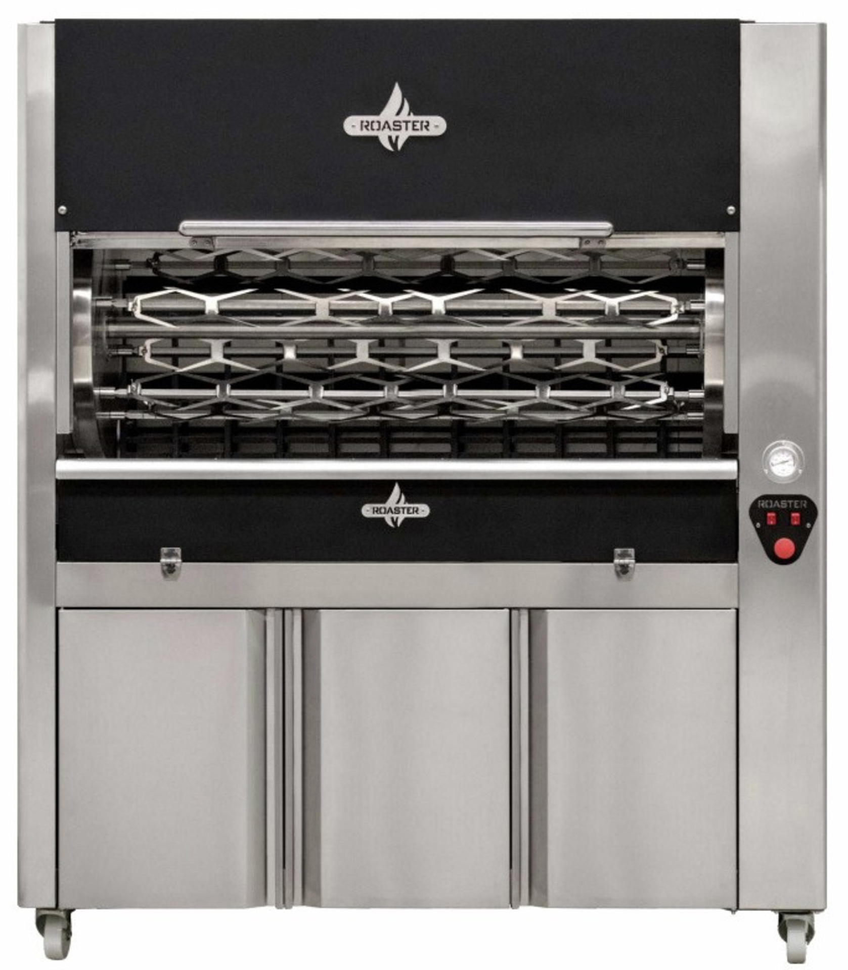 Κλειστός τύπος ψησταριάς (βαγονέτο) για κοτόπουλα άλλα και για όλα τα είδη κρέατος και ψαριού. Κατασκευασμένο από ανοξείδωτο χάλυβα και πλανητικό σύστημα περιστροφής, λειτουργεί το ίδιο με κάρβουνο ή και ξύλο που τοποθετούνται στον θάλαμο καύσης στο πίσω μέρος της καμπίνας. Επενδυμένο με πυρότουβλα και πυρίμαχη γυάλινη πόρτα που διασφαλίζει την συγκράτηση της θερμότητας. Περιλαμβάνει συρτάρι συλλογής στάχτης και δίσκο συλλογής του λίπους με βρύση εκκένωσης.