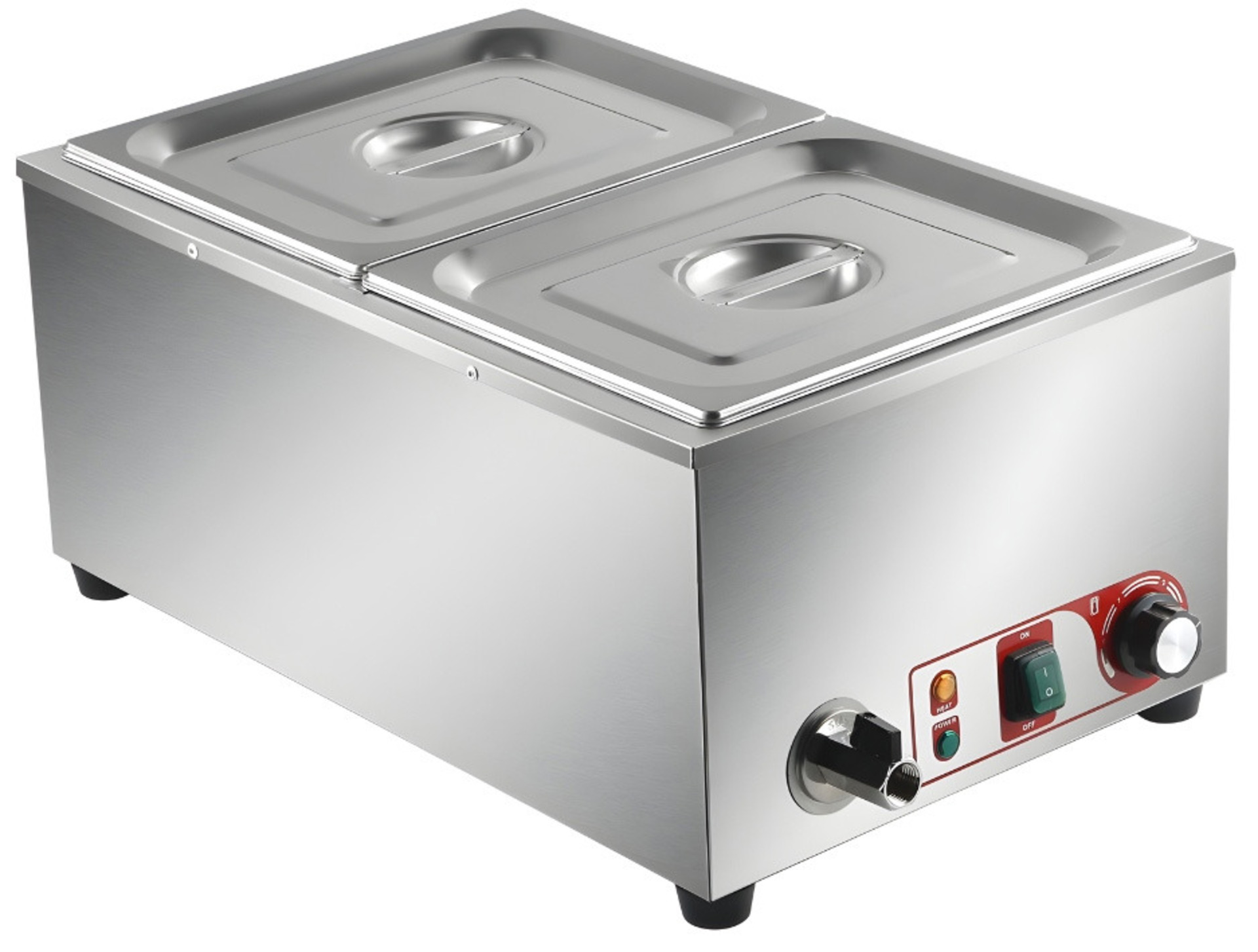 Κατασκευασμένο από ανθεκτικό ανοξείδωτο ατσάλι. Ζεσταίνει τις παρασκευές και τις διατηρεί φρέσκες. Με διακόπτη on-off και θερμοστάτη με εύρος θερμοκρασία 30-85°C. Υψος GN: 15cm. GN 1/2: 325x265mm.Με βρύση νερού.
