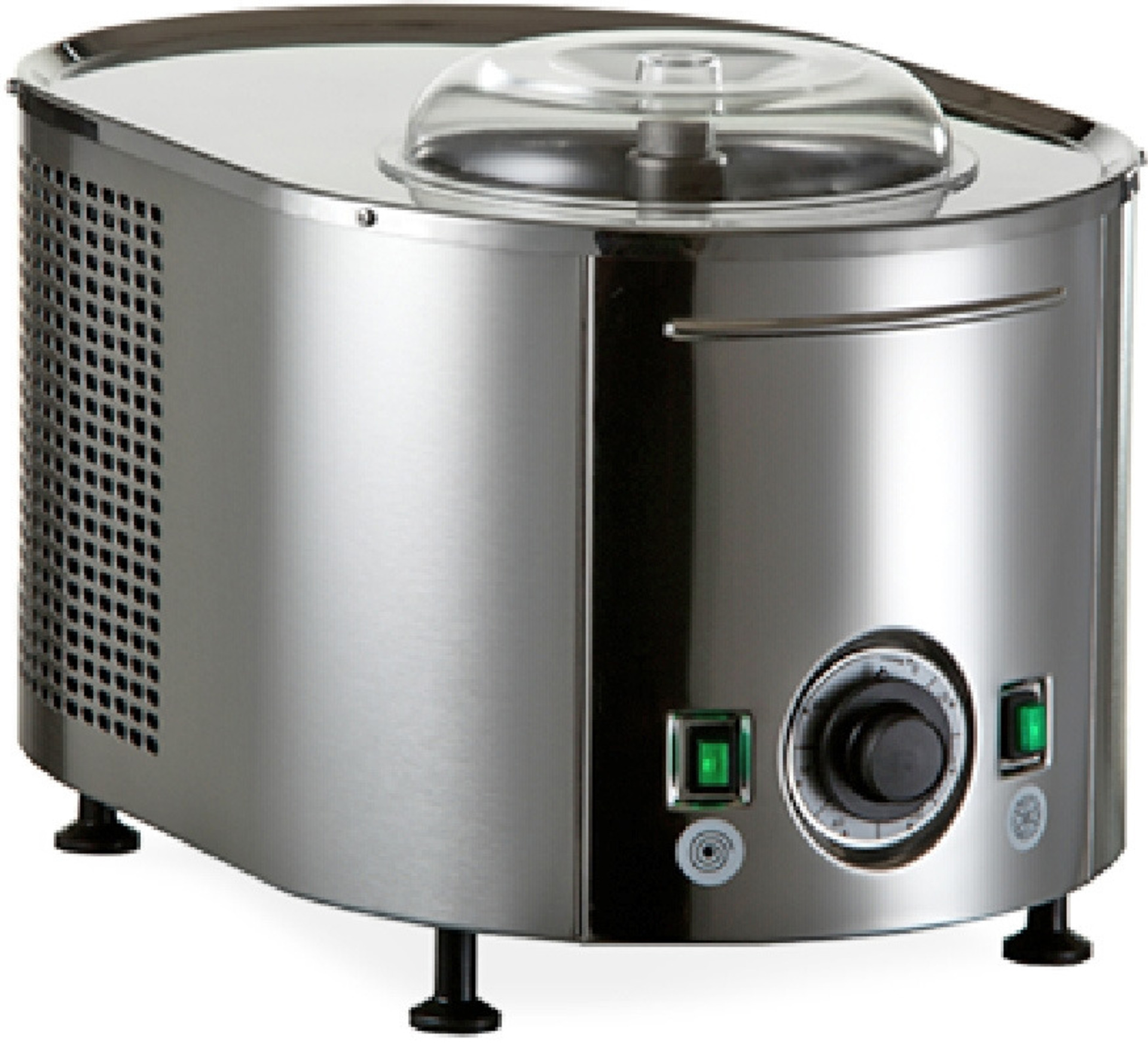Ημι-επαγγελματική μηχανή, διαθέτει ένα πτερύγιο από ανοξείδωτο ατσάλι που περιστρέφεται στις 80 σ.α.λ. - ιδανικό για την ενσωμάτωση της σωστής ποσότητας αέρα και την επίτευξη ενός λείου, κρεμώδους παγωτού σύμφωνα με την αυθεντική ιταλική παράδοση. Πλήρως μηχανική, δεν περιέχει ηλεκτρονικά εξαρτήματα, γεγονός που ενισχύει την αξιοπιστία, την ευκολία χρήσης και τη μακροχρόνια αντοχή της. Με χρονοδιακόπτη 60 λεπτών.