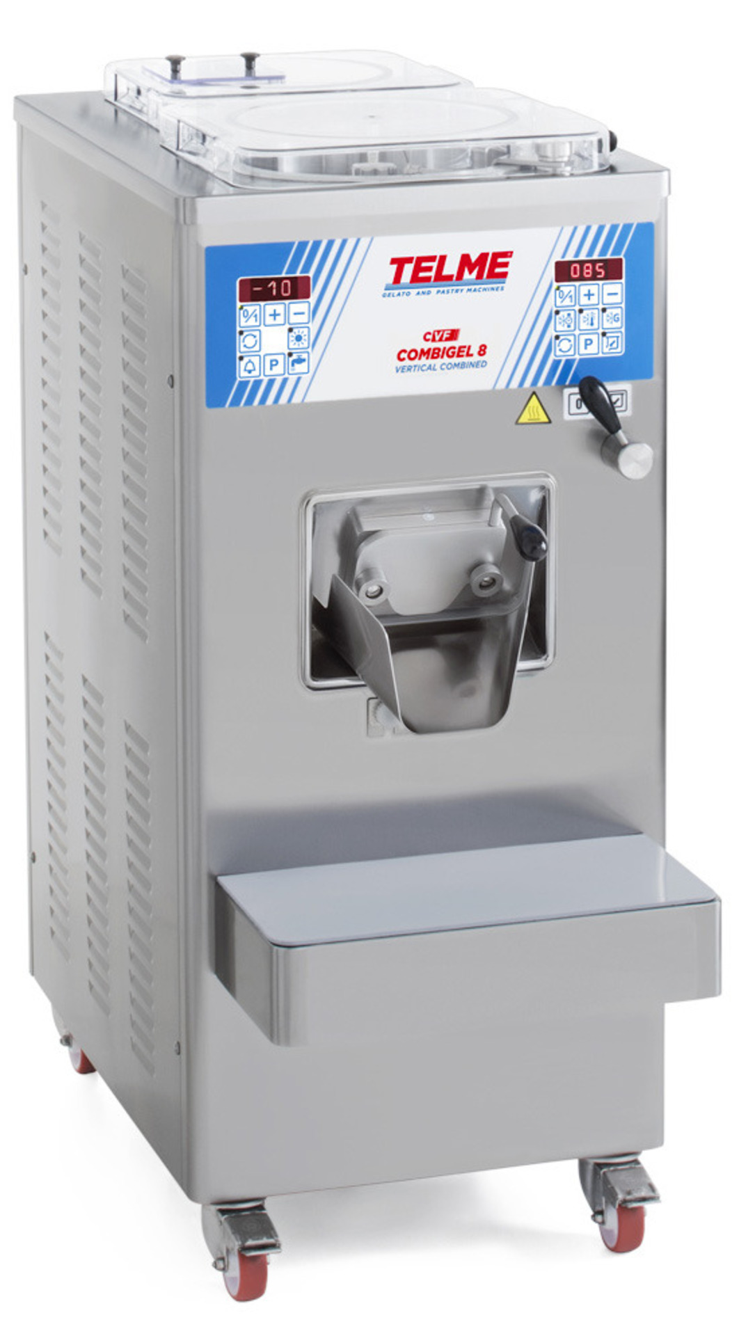 Παγωτομηχανή (batch freezer) + Παστεριωτής στο ίδιο μηχάνημα. Υδρόψυκτο (μοντέλο 8) ή Αερόψυκτο (μοντέλο 8Α).Όλη η διαδικασία παραγωγής gelato σε ένα μηχάνημα! Παράγει Gelato, Sorbetto, Γρανίτα.