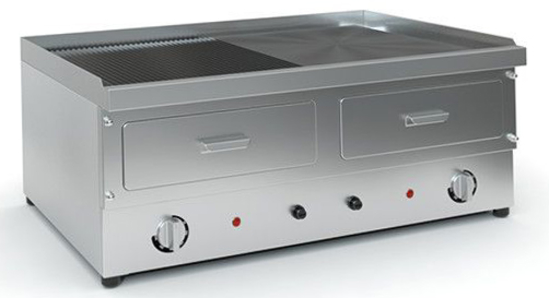 Με 2 θερμοστάτες ασφαλείας στου 370°C. Διατίθεται κατόπιν παραγγελίας με: ολόκληρη ραβδωτή, ολόκληρη λεία ή και ραβδωτή-λεία (μισή-μισή) επιφάνεια ψησίματος.