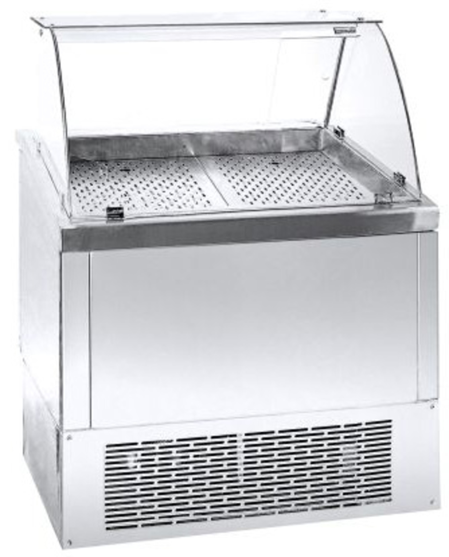 -Με διπλό σύστημα ψύξης. Αποθηκευτικός χώρο με φυσική κυκλοφορία αέρα και βιτρίνα προβολής με σερπαντίνα (στατική ψύξη). -Με 2 πόρτες στον αποθηκευτικό χώρο και μια σχάρα ανά πόρτα. Μπορεί να δεχτεί λεκανάκια GN, προσφέροντας επιπλέον ευελιξία στη διαχείριση των προϊόντων. -Με επικλινή σχεδίαση και τα κουρμπαριστά τζάμια προς όφελος της ορατότητας. -Πάνω τζάμι παράλληλο με το έδαφος. -Πλεξιγκλας πόρτες στο πίσω μέρος βοηθούν για διατήρηση της θερμοκρασίας και αποφυγή εισόδου εντόμων. -Κατασκευή από ανοξείδωτο χάλυβα AISI304. -Συνιστάται η σύνδεση του ψυγείου με κεντρική αποχέτευση για βέλτιστη αποδοτικότητα.
