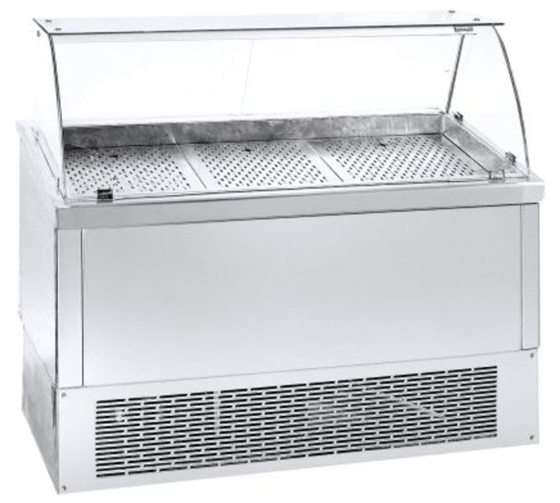 -Με διπλό σύστημα ψύξης. Αποθηκευτικός χώρο με φυσική κυκλοφορία αέρα και βιτρίνα προβολής με σερπαντίνα (στατική ψύξη). -Με 3 πόρτες στον αποθηκευτικό χώρο και μια σχάρα ανά πόρτα. Μπορεί να δεχτεί λεκανάκια GN, προσφέροντας επιπλέον ευελιξία στη διαχείριση των προϊόντων. -Με επικλινή σχεδίαση και τα κουρμπαριστά τζάμια προς όφελος της ορατότητας. -Πάνω τζάμι παράλληλο με το έδαφος. -Πλεξιγκλας πόρτες στο πίσω μέρος βοηθούν για διατήρηση της θερμοκρασίας και αποφυγή εισόδου εντόμων. -Κατασκευή από ανοξείδωτο χάλυβα AISI304. -Συνιστάται η σύνδεση του ψυγείου με κεντρική αποχέτευση για βέλτιστη αποδοτικότητα.