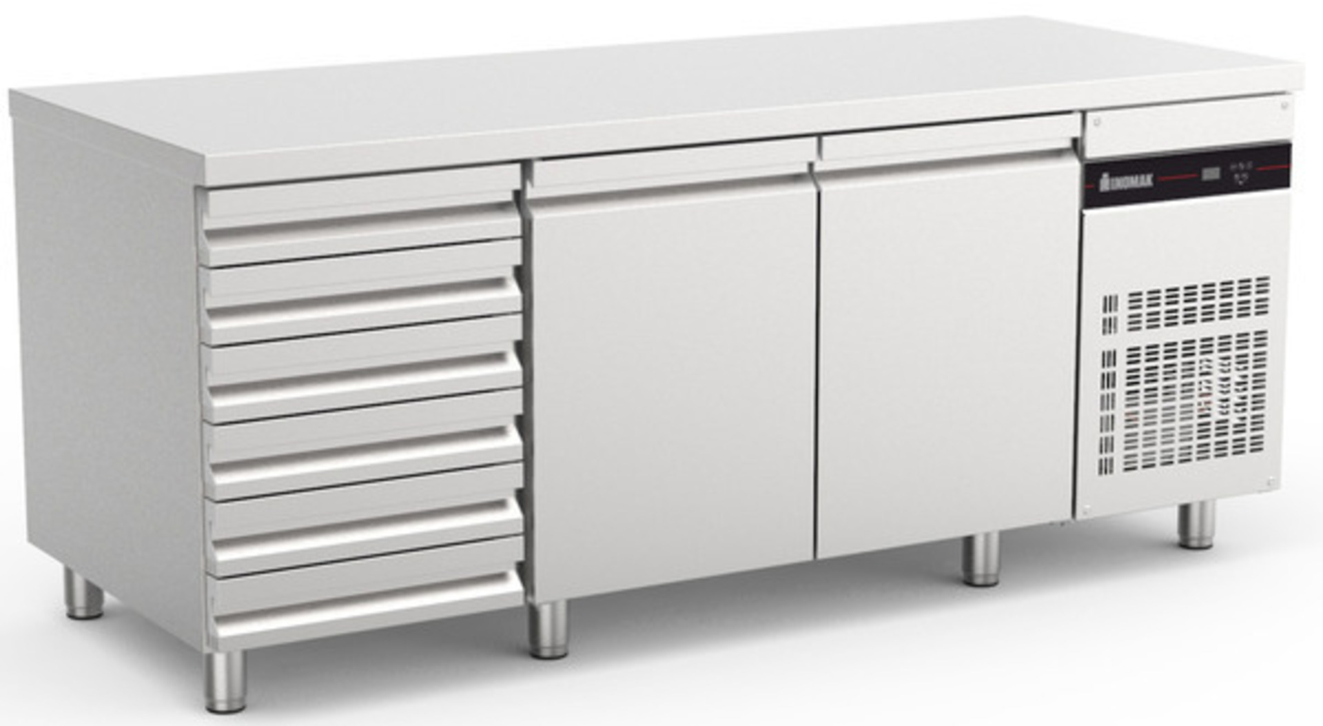Ψυγείο πάγκος 80cm βάθος (για ταψιά 60x40) με 2 πόρτες, ινοξ καπάκι και ουδέτερη συρταριέρα.