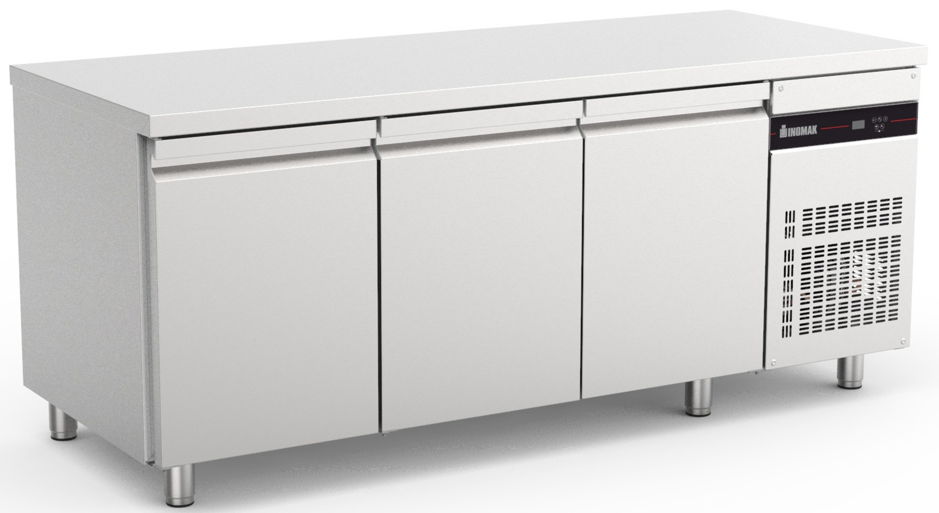 Ψυγείο πάγκος 80cm βάθος (για ταψιά 60x40) με 3 πόρτες και ινοξ καπάκι.