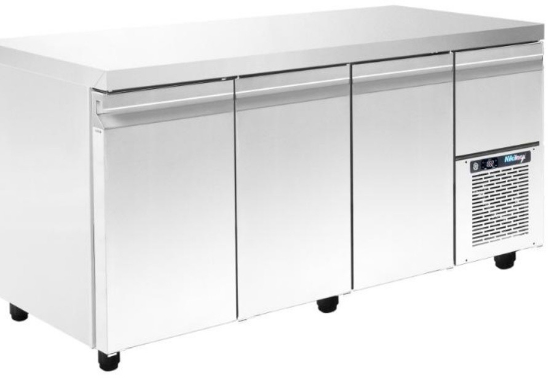 Ψυγείο πάγκος 80cm βάθος (για ταψιά 60x40). Ιδανικός για ζαχαροπλαστεία, αρτοποιΐα και πιτσαρίες, με 3 πόρτες και ψυχόμενο χώρο πάνω από την μηχανή.