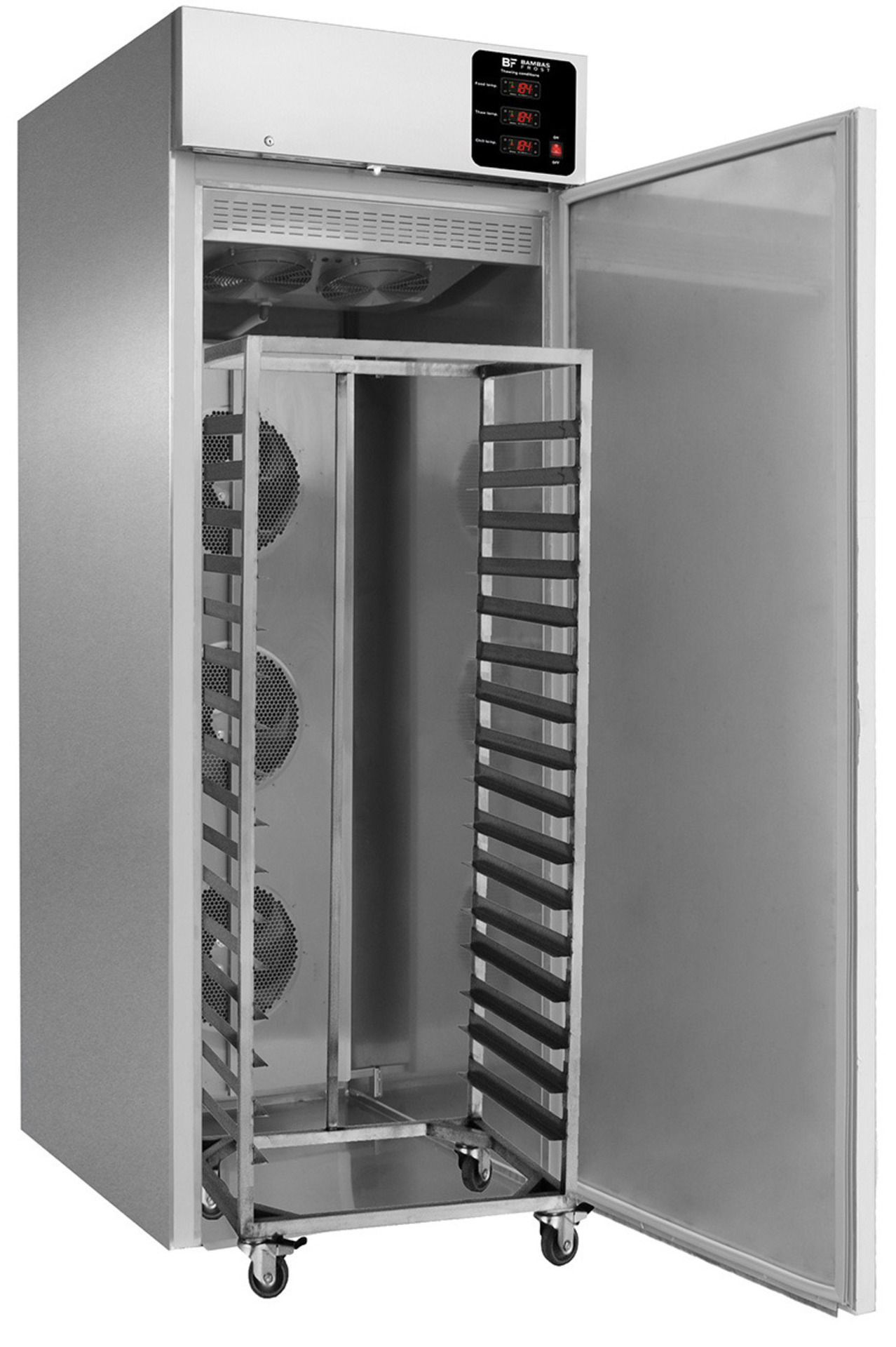 -Αποψύχει μεγάλες ποσότητες κατεψυγμένων τροφίμων με ασφάλεια έως τη θερμοκρασία συντήρησης (1-4 °C) σε 4 με 6 ώρες. -Αυτόματη έναρξη λειτουργίας απόψυξης σύμφωνα με τη θερμοκρασία του προϊόντος. -Αυτόματη λειτουργία συντήρησης του προϊόντος όταν αυτό αποψυχθεί. -Κατασκευασμένο εσωτερικά και εξωτερικά από ανοξείδωτο χάλυβα. -Ράμπα για τρόλεϊ τροφίμων. -Μόνωση με οικολογική πολυουρεθάνη πάχους 7 cm στο σώμα και 8 cm στον πάτο. -Πάτος με υγειονομικές γωνίες. -Πόρτα με αυτόματη επαναφορά. -Τερματικός διακόπτης που σταματάει την λειτουργία του στοιχείου με το άνοιγμα της πόρτας. -Κλειδαριά στην πόρτα. -Αισθητήρας "καρφί" για μέτρηση της θερμοκρασίας στο πυρήνα των τροφίμων. -Μεγάλη ροή αέρα για γρηγορότερη απόψυξη. -Δυνατότητα ρύθμισης θερμοκρασιών απόψυξης και συντήρησης. -Ψηφιακός θερμοστάτης.