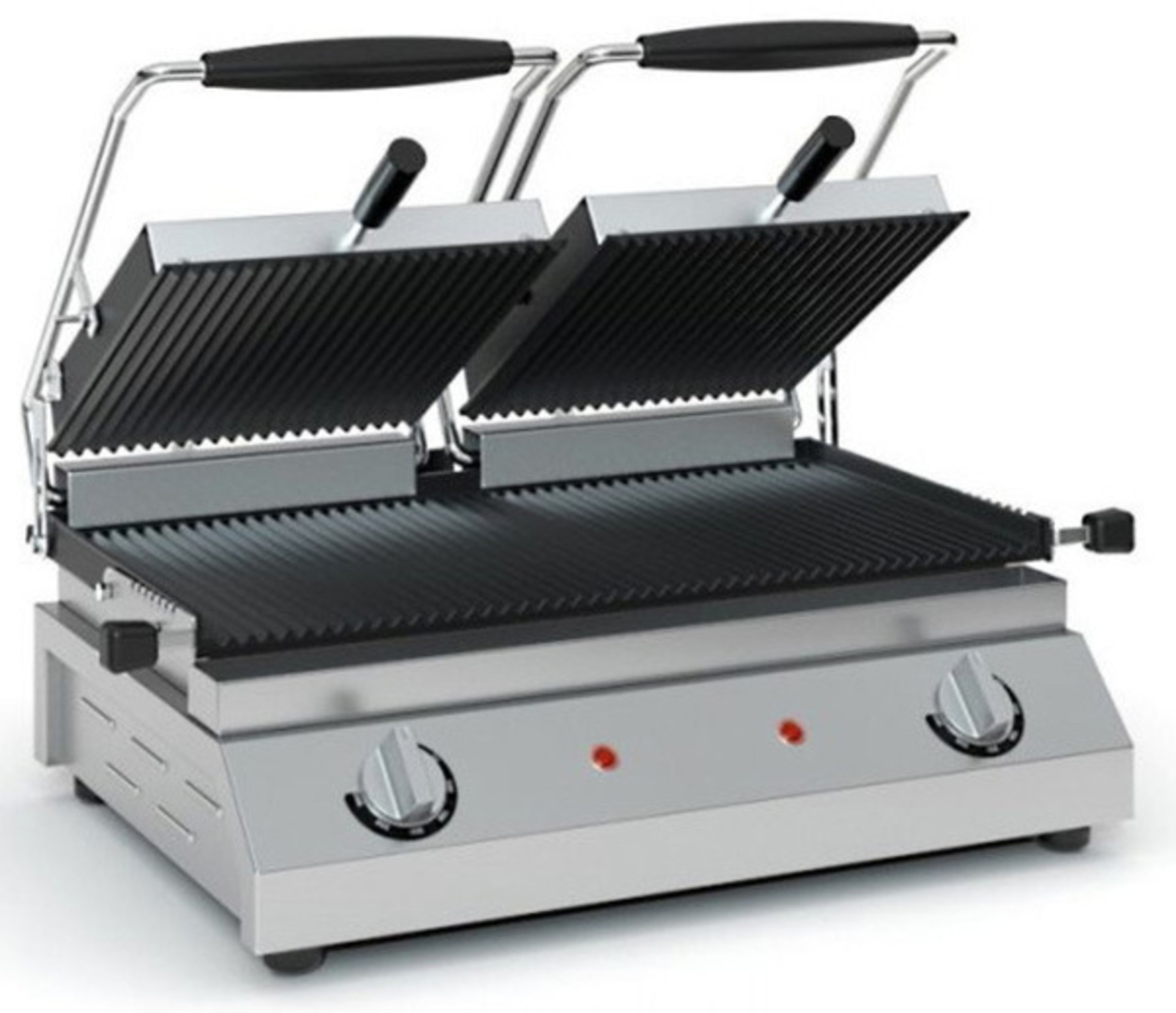 -Ενδεικτική λυχνία (λαμπάκι), αποσπώμενο λιποσυλλέκτη και μεταλλική λαβή για ευκολότερη απομάκρυνση των υπολειμμάτων από την επιφάνεια ψησίματος.