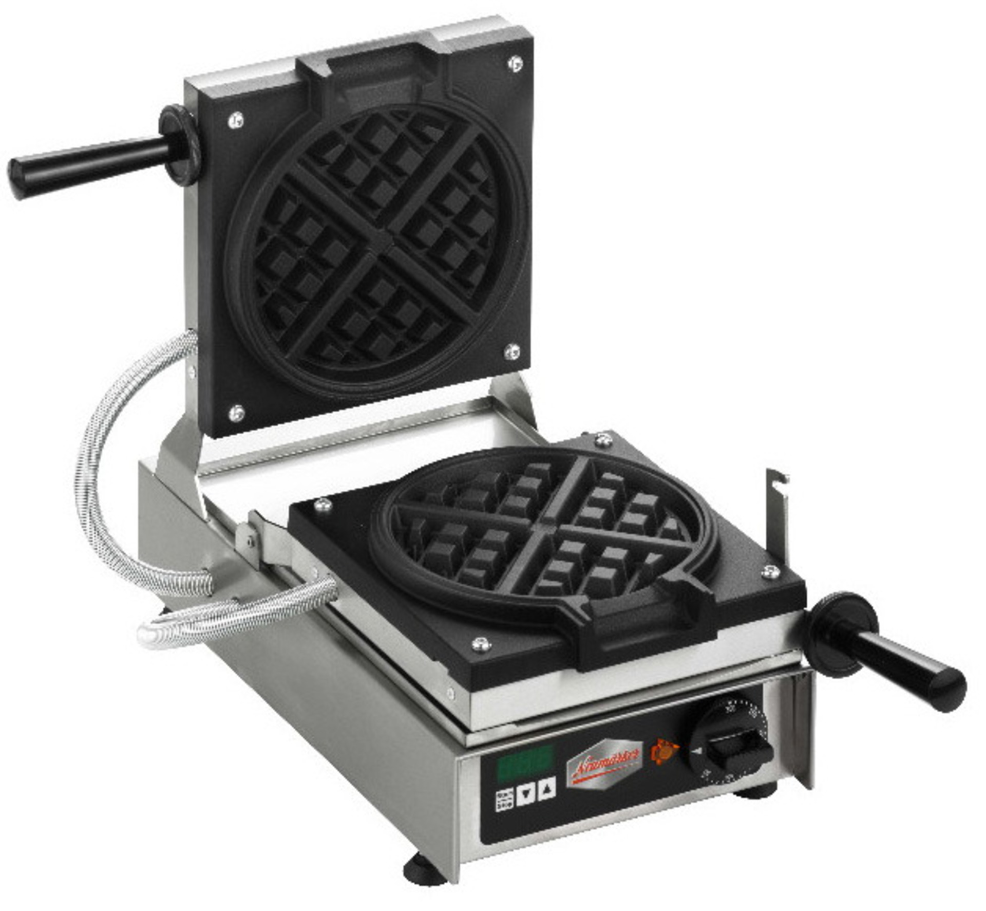 Βαφλιέρα κάθετου ψησιμάτος Helios σετ με ζευγάρι πλάκες για βάφλα Americano. Η συσκευή ψήνει μια βάφλα στρογγυλή τύπου Americano ∅185mm με πάχος 30mm. Ο χρόνος ψησίματος διαφοροποιείται ανάλογα με το μείγμα αλλά κατά μέσο όρο είναι 3 λεπτά και 20 δευτερόλεπτα. Η ποσότητα μείγματος και πάλι διαφοροποιείται ανάλογα με το μείγμα αλλά κατά μέσο όρο είναι 190ml.