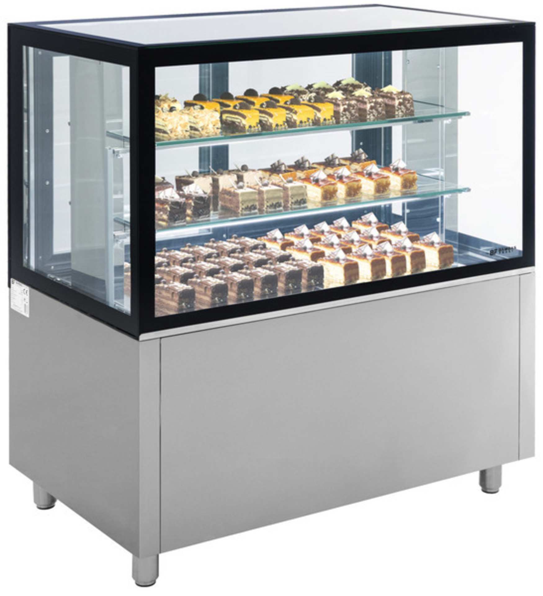 -Ψύξη αέρα, βεβιασμένης κυκλοφορίας, με οριζόντιο αγωγό σε κάθε ράφι -Κατασκευασμένο από ανοξείδωτο χάλυβα -Μόνωση με οικολογική πολυουρεθάνη πάχους 5cm -Γυάλινα ράφια -Συρόμενες πόρτες με αυτόματη επαναφορά -Φωτισμός βιτρίνας LED -Κρυφός φωτισμός διακόσμησης LED -Ρυθμιζόμενη κυκλοφορία αέρα -Βιτρίνα με διπλά τζάμια για εξοικονόμηση ενέργειας -Πόδια ρυθμιζόμενα -Φρέον οικολογικό